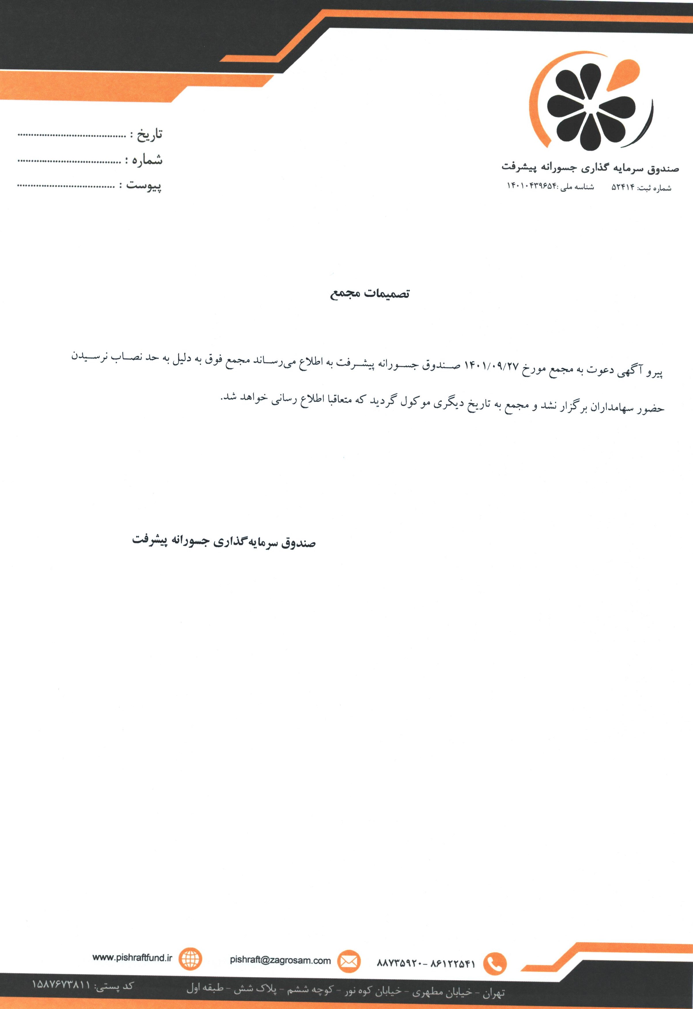 صورت جلسه مجمع صندوق جسورانه پیشرفت مورخ ۱۴۰۱/۰۸/۲۹